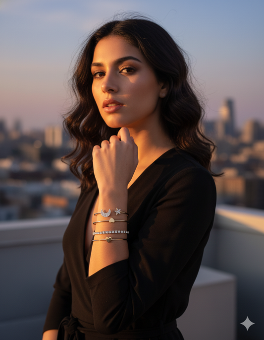 Celestial Charm & Dazzle Layered Bracelet Set - Gold Star, Moon & Rhinestone Stackable Jewelry for Women
