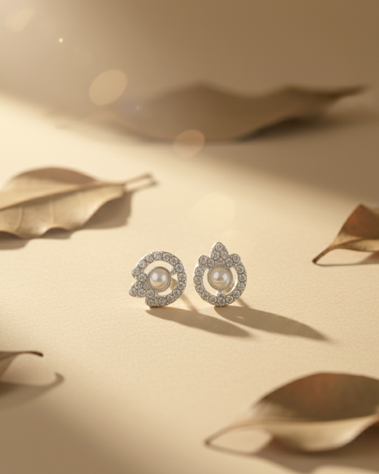 Sparkling Pearl Crown Studs