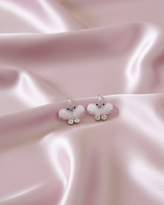 Light Blue Crystal Butterfly Hoop Earrings | Korean Style Rhinestone Charm Dangle Hoops