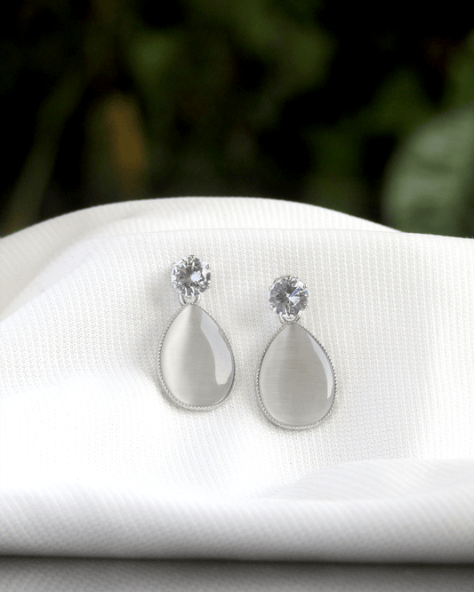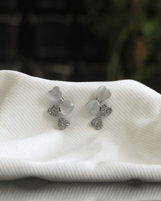 Korean Clover Heart Cats Eye and Crystal Cluster Stud Earrings