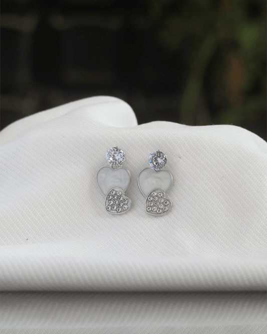 Sweetheart Duet Korean Style Enamel and Pave Heart Drop Stud Earrings